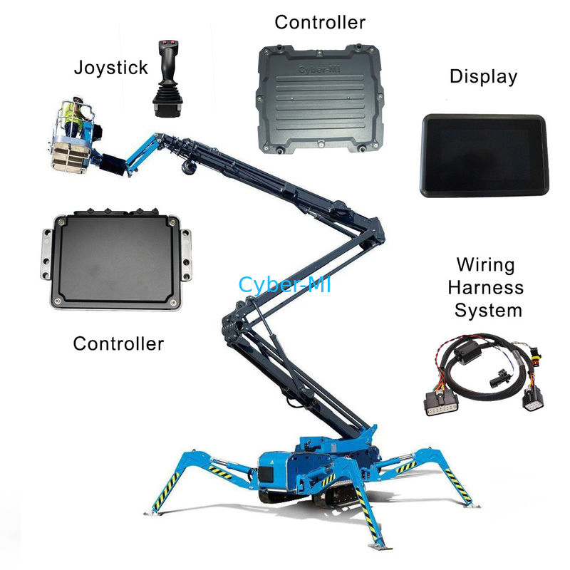 نظام التحكم الإلكتروني لسيارة العمل الجوي من نوع Cyber-MI Spider مبني حول شاشة عرض وجهاز تحكم، والذي يعمل كمكونات مركزية.يتم استكماله بواسطة وحدات IO الذكية، أجهزة استشعار الميل وأجهزة استشعار الضغط وأجهزة إشارة أخرى. يسمح النظام بالاتصال المتبادل عبر حافلة CAN ، مما يسهل تبادل البيانات والتكامل السلس.